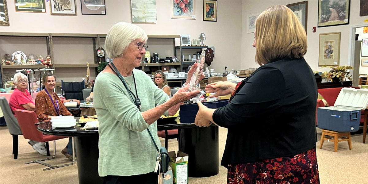 "At Treasures, I get to meet other volunteers, many of whom have had family in hospice and wish to give back. My husband had hospice care and I and my family will never cease to be grateful to my Tidewell family for their caring support," Ann said.