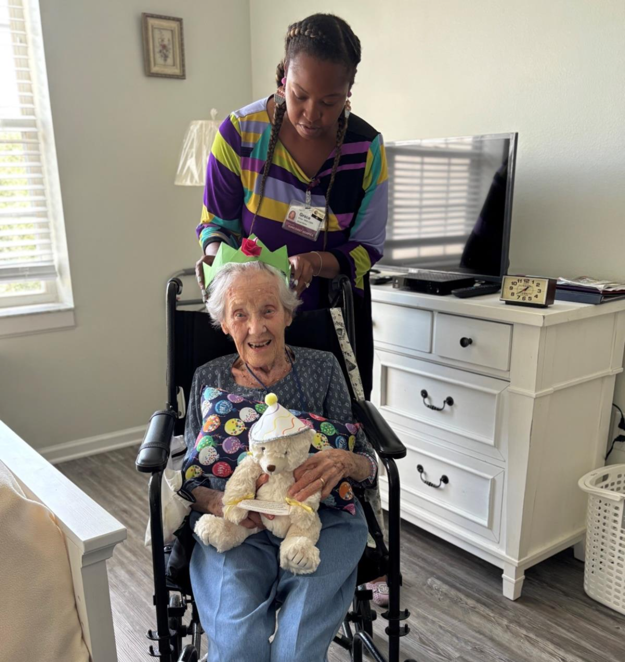 Irmagard, a patient with Suncoast Hospice, was turning 100. Born in Germany she moved to the U.S. after marrying a man in the U.S. Army. We couldn't let her birthday come and go without a treat from our Party Pals program—a way to celebrate milestone moments and bring a little extra joy to those in our care.