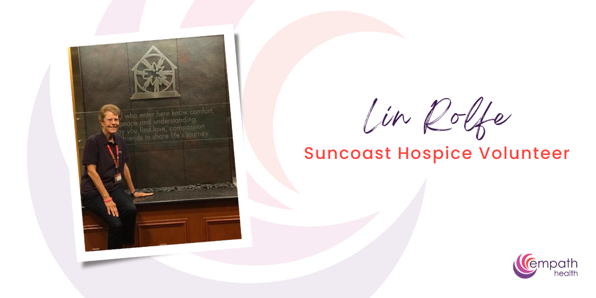 Rolfe is so valuable to Suncoast Hospice clinical staff that the volunteer department is recruiting more early-morning volunteers for the North Pinellas Care Center as well as the Mid-Pinellas and South Pinellas Care Centers in Pinellas Park and St. Petersburg, respectively. Suncoast Hospice is a member of Empath Health.